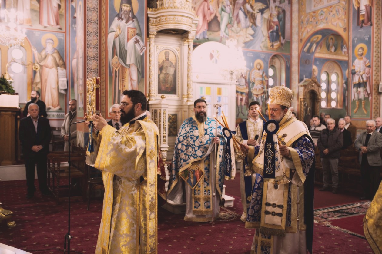 Τον Σεβασμιώτατο πλαισίωσαν, ο Πρωτοσύγκελλος της Ιεράς Μητροπόλεως Αρχιμανδρίτης Φίλιππος Χαμαργιάς, ο εφημέριος του πανηγυρίζοντα ναού και Αρχιερατικός Επίτροπος Μεσσήνης Πρωτοπρεσβύτερος Κωνσταντίνος Μελισσουργός, ο εφημέριος της ενορίας του Αγίου Δημητρίου Μεσσήνης Πρωτοπρεσβύτερος Ανδρέας Ζάννης και ο Διάκονος Θεόφιλος Κυριάκος.